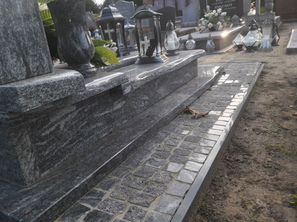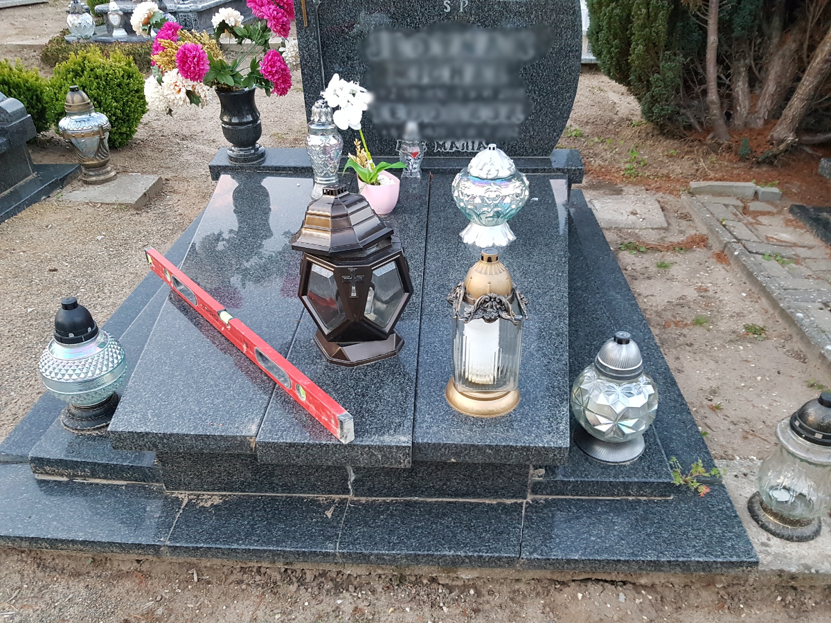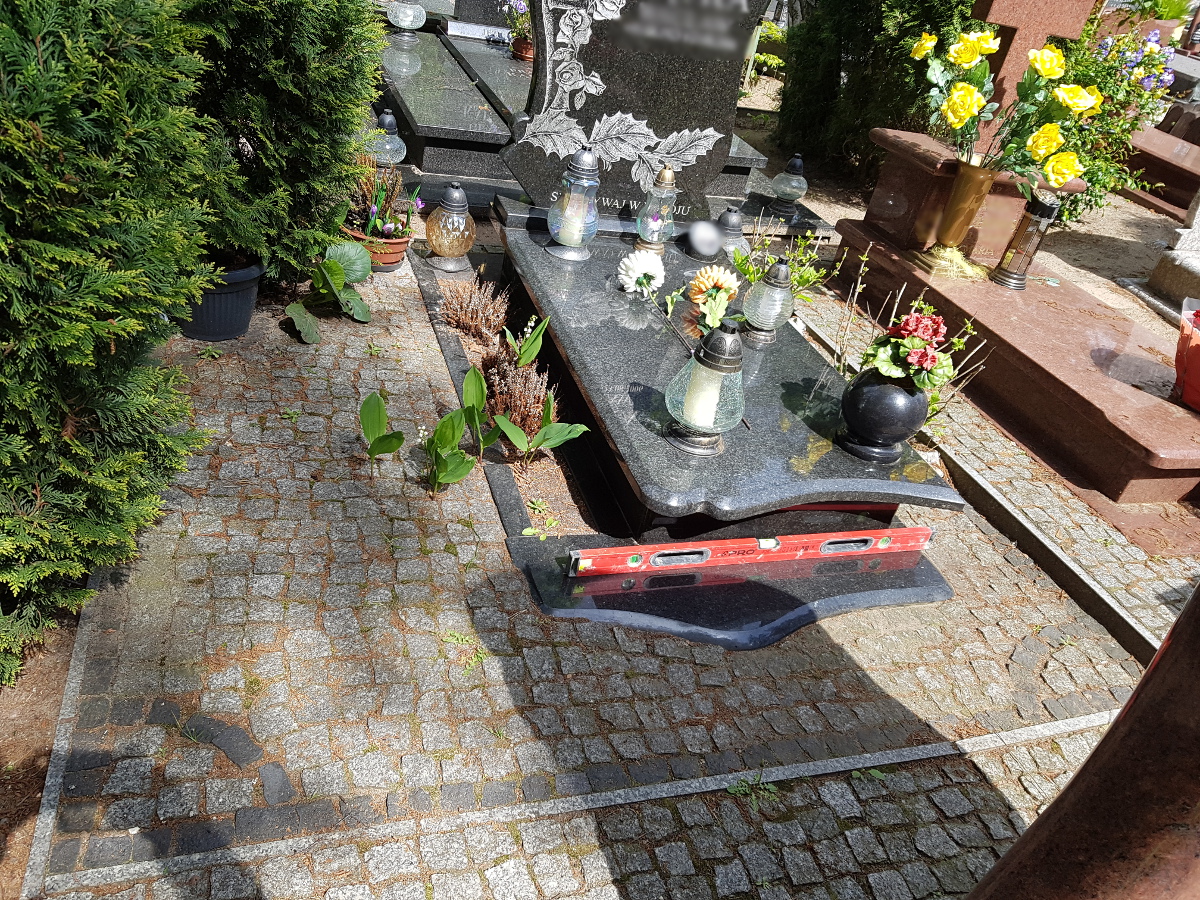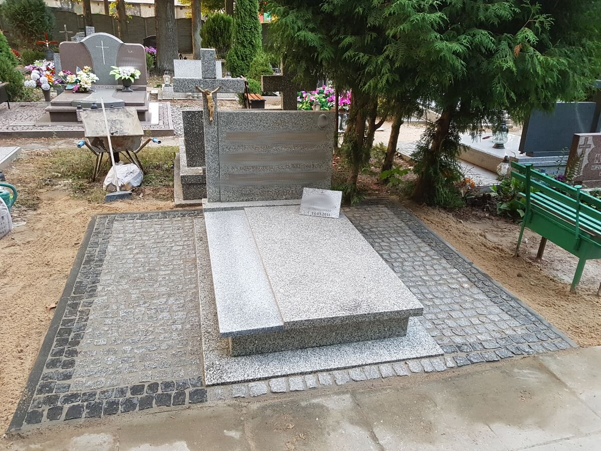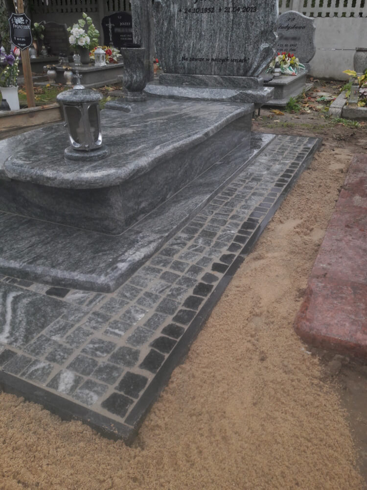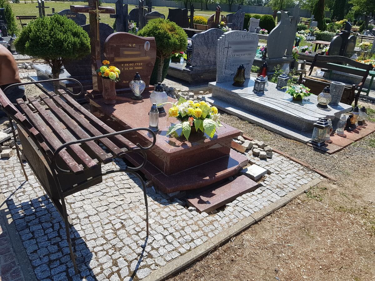 Oprócz tworzenia nagrobków zajmujemy się również podnoszeniem zapadniętych pomników oraz renowacją płyty grobowej. Powodem zapadania się ziemi pod grobem, czy też pękania płyty nagrobnej są przede wszystkim obfite deszcze, bowiem woda dostając się w szczeliny kamienia powoduje jego pękanie. Opady wpływają również na wypłukiwanie się ziemi pod grobem, co powoduje z kolei jego zapadnięcie. Nasze prace skupiają się na wymianie pękniętych elementów, wyłożeniu miejsca wokół nagrobka wysokiej jakości kostką oraz podnoszeniem całej konstrukcji.