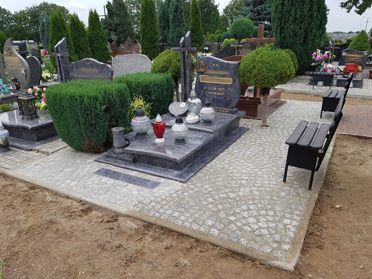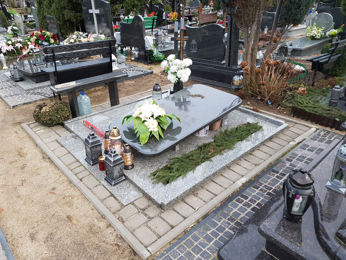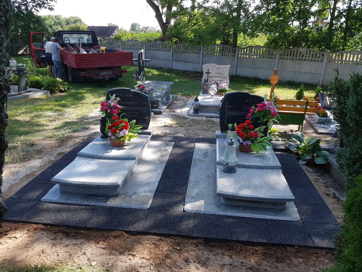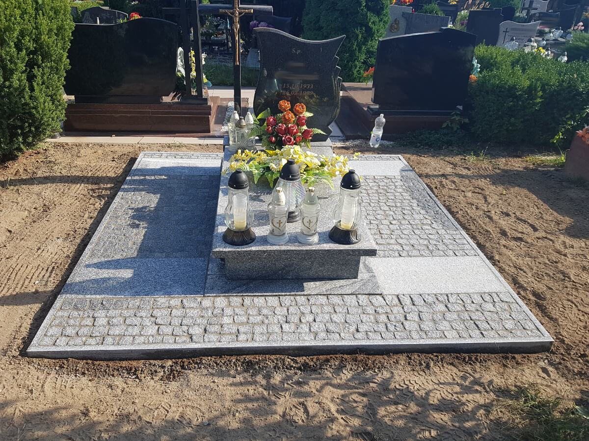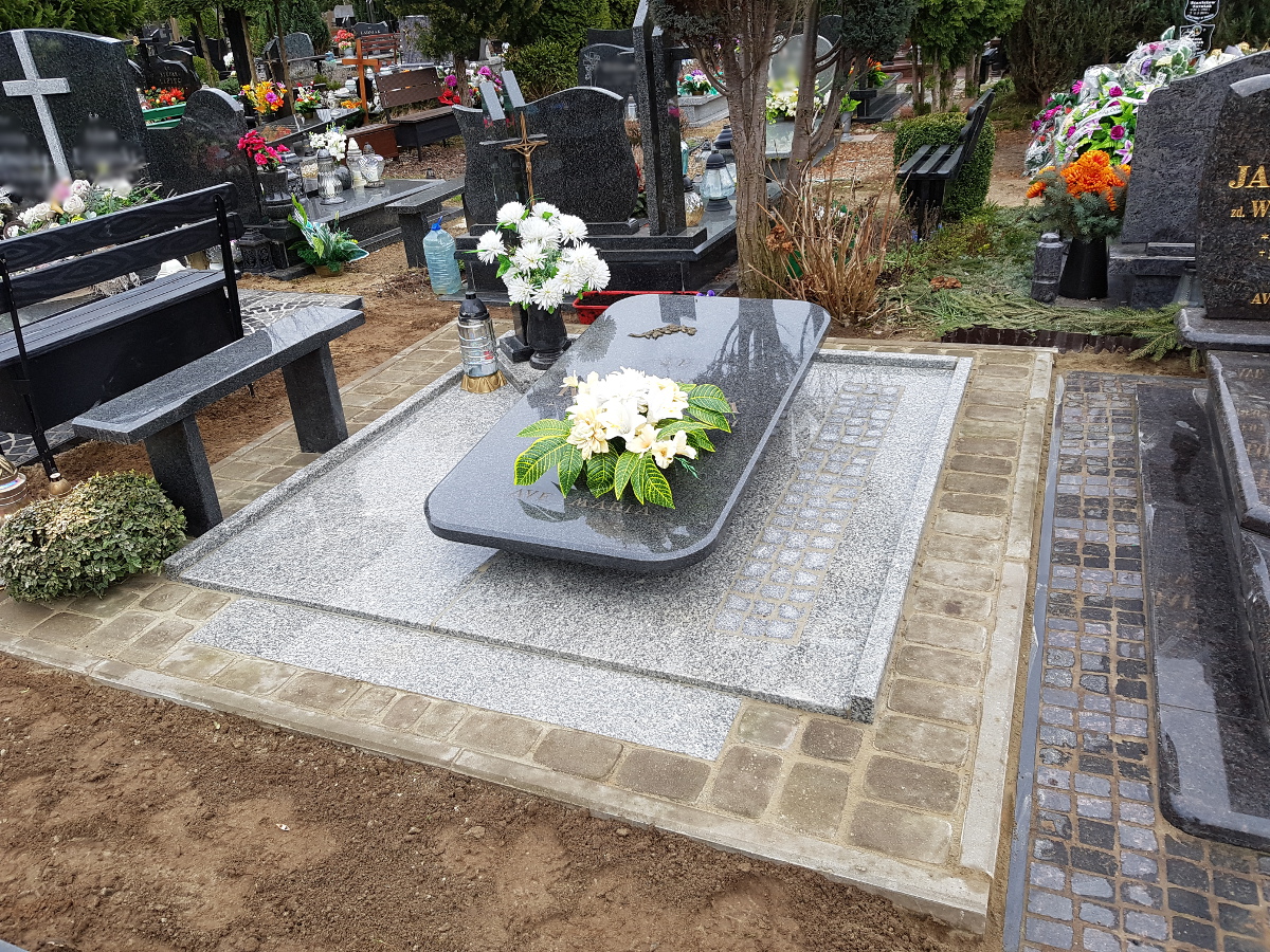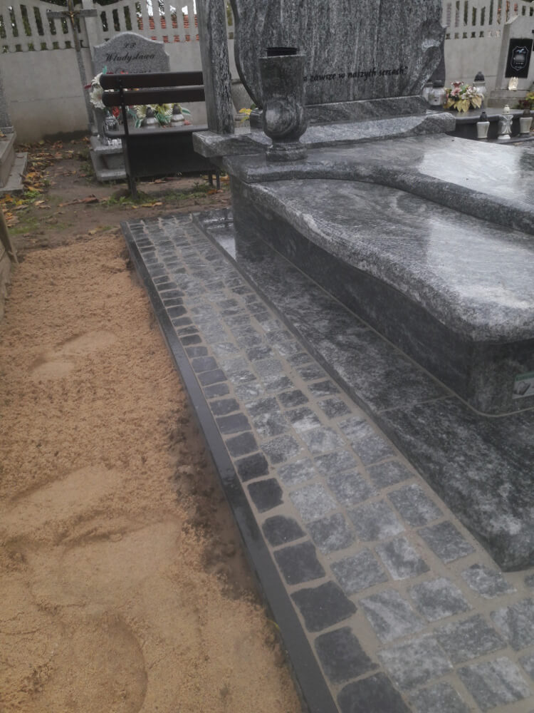 Oprócz tworzenia nagrobków zajmujemy się również podnoszeniem zapadniętych pomników oraz renowacją płyty grobowej. Powodem zapadania się ziemi pod grobem, czy też pękania płyty nagrobnej są przede wszystkim obfite deszcze, bowiem woda dostając się w szczeliny kamienia powoduje jego pękanie. Opady wpływają również na wypłukiwanie się ziemi pod grobem, co powoduje z kolei jego zapadnięcie. Nasze prace skupiają się na wymianie pękniętych elementów, wyłożeniu miejsca wokół nagrobka wysokiej jakości kostką oraz podnoszeniem całej konstrukcji.